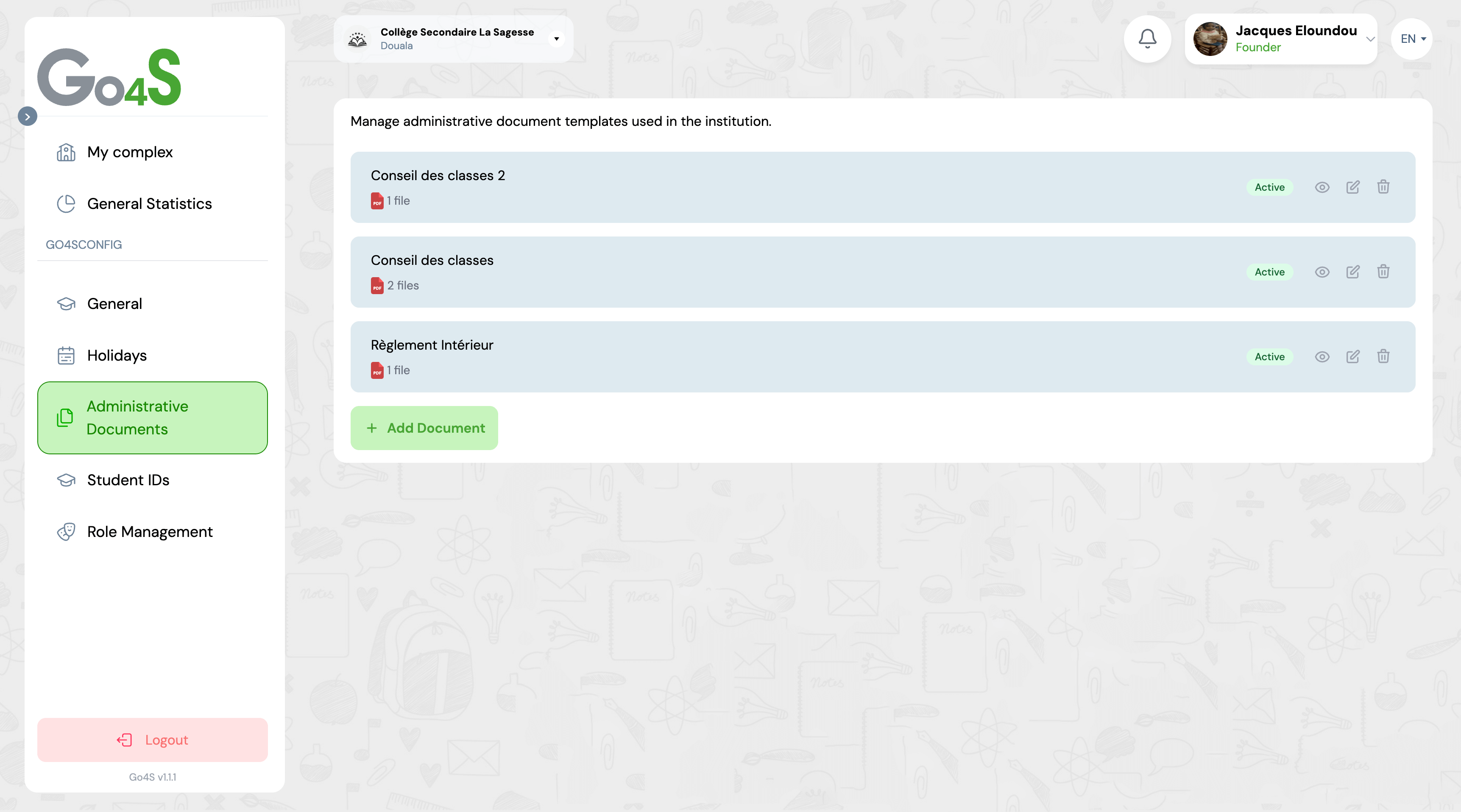 The Administrative Documents feature allows you to store, organize, and share all official and important documents of your school in a secure and centralized way.
